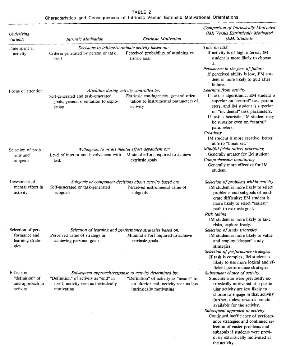 Característiques i conseqüències de les orientacions motivacionals intrínseques versus extrínseques, extret de Lepper1988: